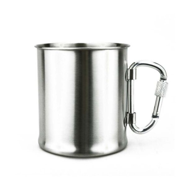 Mok van 100% RVS met karabijnhaak en schroefsluiting. Inhoud: 300 ml Gewicht: 62 g