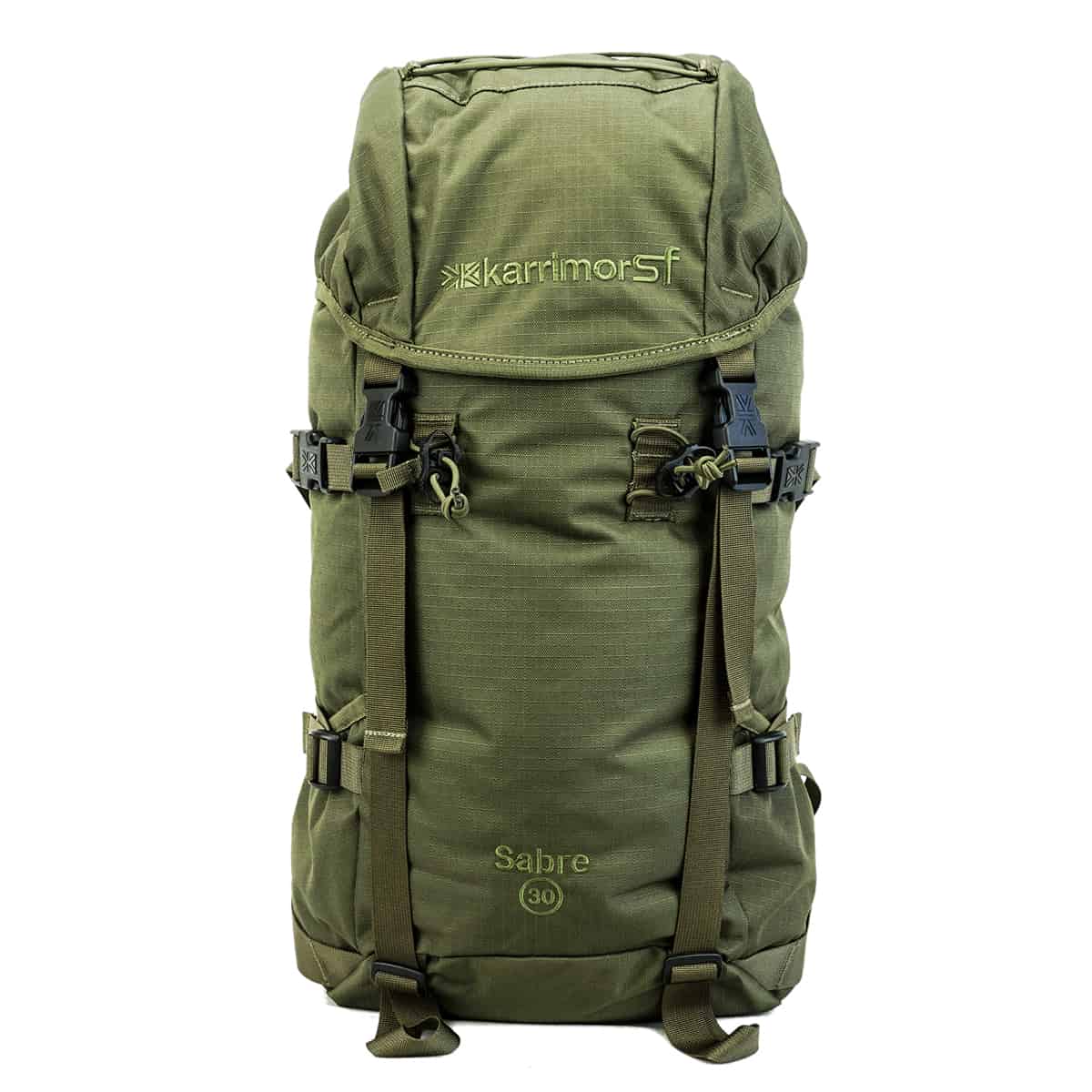 De Sabre 30 rugzak van Karrimor heeft één groot vak met een inhoud van 30 liter. Gemaakt van sterk 1000 denier cordura. Heeft een Coolmesh windtunnel voor optimale ventilatie van uw rug. Twee lussen voor ijsbijl, pickel, enz. De klep heeft een kaartenvak. In de (open) zijtassen kan een lang voorwerp ingeschoven worden. Op de klep zit elastisch koord voor snelle bevestiging van uitrusting. Voorzien van compressiebanden, borstriem en heupgordel.