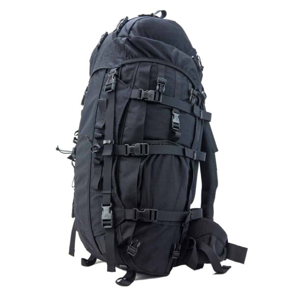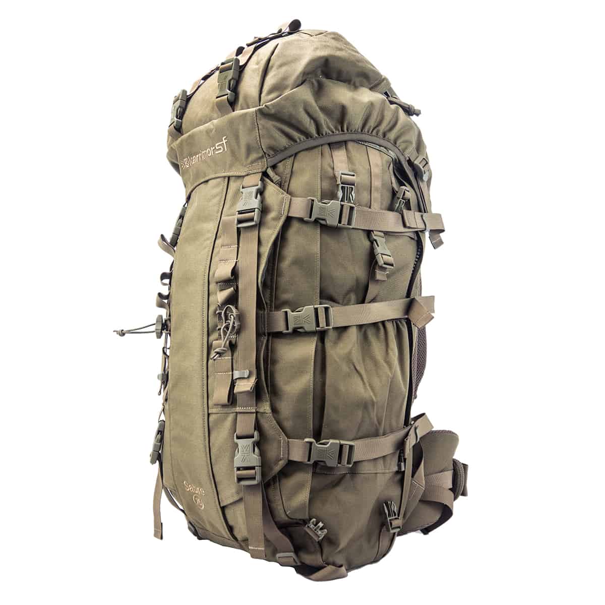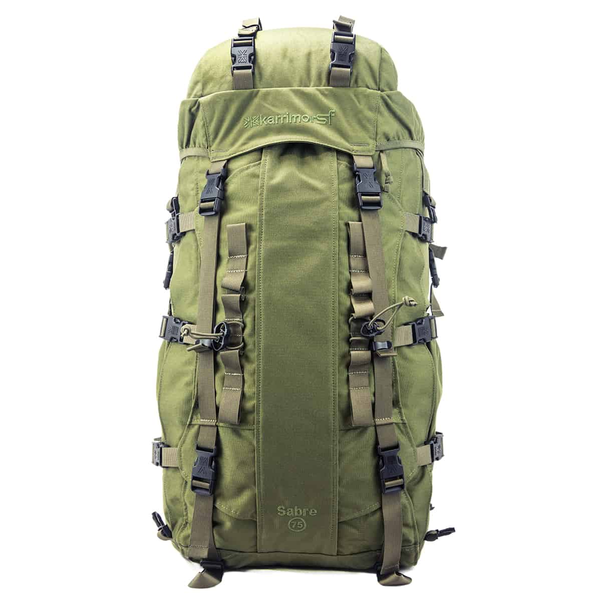 De Karrimor Sabre 75 is de ideale rugzak wanneer het een en ander meegenomen moet worden maar wanneer het keukenaanrecht thuis gelaten kan worden. Er zit werkelijk alles op en aan wat een rugzak moet hebben, en toch is het gewicht maar 2500g. Voorzien van het Supercool Wind Tunnel systeem. Compatible met het Britse militaire PLCE systeem. De Camelbak Thermobak in KL-camo kan dus buitenop de Sabre 75 geklikt worden. En desnoods twee maal.
