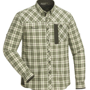 Het Sarek Shirt heeft een comfortabele pasvorm. Sterke 100% katoenen flanelstof met een zacht, licht geborsteld oppervlak. Het overhemd heeft twee plooien in de rug voor extra bewegingsvrijheid, een button-down kraag, twee borstzakken en hoornkleurige knopen.