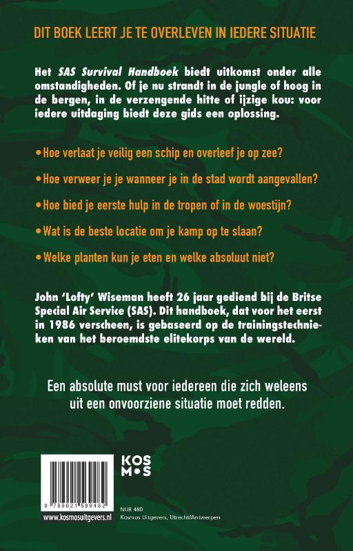 Het SAS Survival Handboek is wereldwijd dé gids om te kunnen overleven in elke denkbare omgeving. De voormalige Britse SAS-commando John ‘Lofty’ Wiseman heeft alle technieken in dit boek ontelbare malen in de harde praktijk getest. De survivalgids is een onmisbare hulp om te kunnen overleven in de wildernis en in elk klimaat, op land, op zee of in de stad, voor kampeerders, trekkers en zeilers. De nieuwe editie is completer dan ooit. Helemaal geüpdatet en met een nieuwe toegevoegde sectie over ‘urban survival’ is de best verkopende survivalgids onmisbaar voor iedereen die zich bezighoudt met outdooractiviteiten.