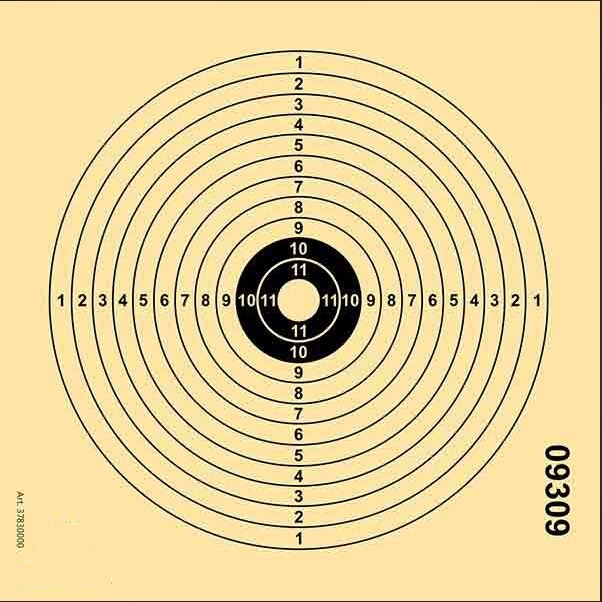 Schietkaarten 14×14 cm met 12 ringen, ring 10 en 11 zwart, 12 wit.