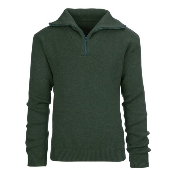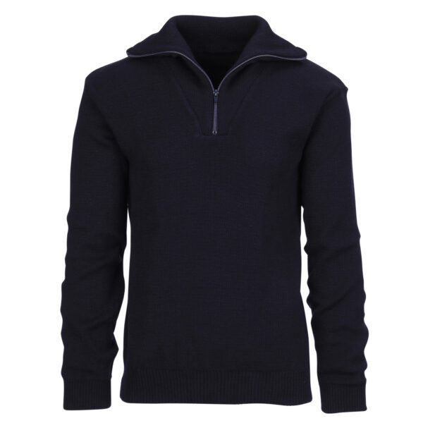 Een echte Troyer trui als deze behoort altijd een kraag te hebben waar je door dicht ritsen een col van kunt maken.