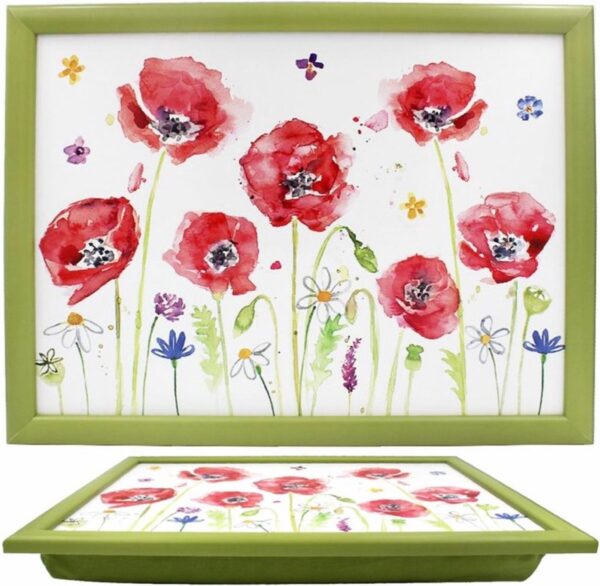 Schootkussen / Lap Tray. Een laptray is eigenlijk een kussen met een soort dienblad er op gemonteerd. Wanneer je in je gemakkelijke stoel zit leg je hem op je bovenbenen en dan heb je een mooi klein werkplateautje.