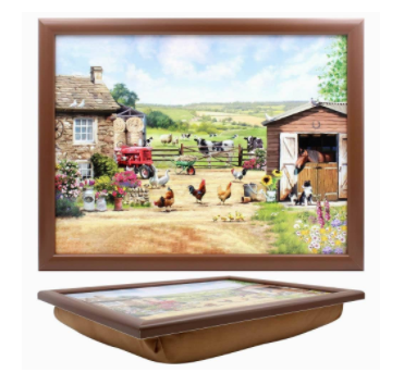 Schootkussen / Lap Tray. Een laptray is eigenlijk een kussen met een soort dienblad er op gemonteerd. Wanneer je in je gemakkelijke stoel zit leg je hem op je bovenbenen en dan heb je een mooi klein werkplateautje.