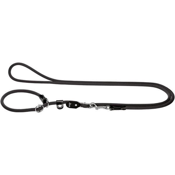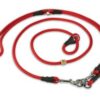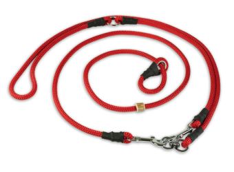 Extra lange, fraai afgewerkte, sliplijn. Ook praktisch tijdens het lopen naast de fiets. Verstelbaar in lengte d.m.v. een musketonhaak en enkele O-ringen. Daardoor kun je de lijn ook even om een boom of stoelpoot vastleggen.
