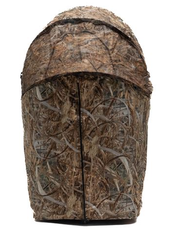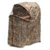 Het tentdoek is aan de buitenkant goed gecamoufleerd en aan de binnenkant zwart gecoat om het binnen zo donker mogelijk te maken. Je hebt genoeg ruimte om te zitten of rechtop te staan, en natuurlijk ruimte voor je uitrusting. Zet je tas naast je op de grond.