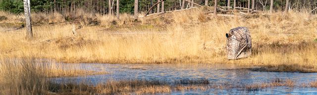 Voor extra camouflage kun je takken, riet of bladeren gebruiken (breek geen levende takken of planten af), of gebruik een camouflagenet.