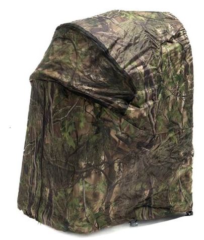 Het tentdoek is aan de buitenkant goed gecamoufleerd en aan de binnenkant zwart gecoat om het binnen zo donker mogelijk te maken. Je hebt genoeg ruimte om te zitten of rechtop te staan, en natuurlijk ruimte voor je uitrusting. Zet je tas naast je op de grond.
