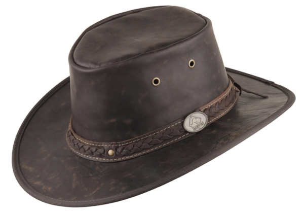 Scippis leren hoed ‘Sundowner’. Zeer lichte hoed van kangoeroeleer. Is regenbestendig en ook samendrukbaar.