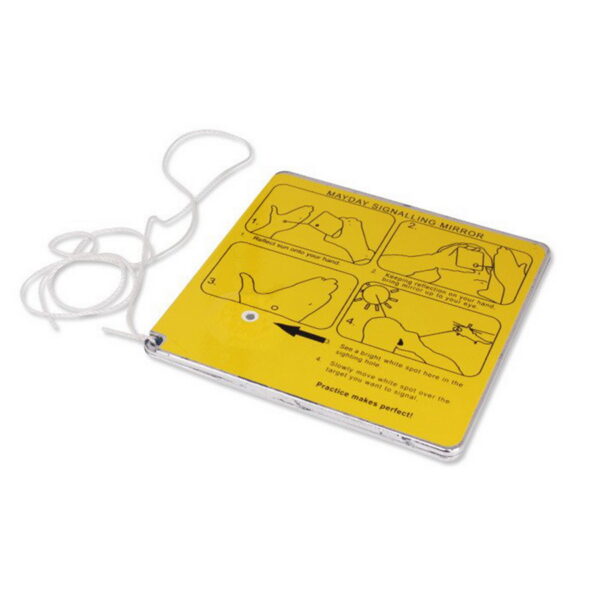 Noodsignaal spiegel 10 X 10 cm. Deze innovatieve spiegel is licht van gewicht. Robuust en goedgekeurd voor maritiem en militair gebruik.