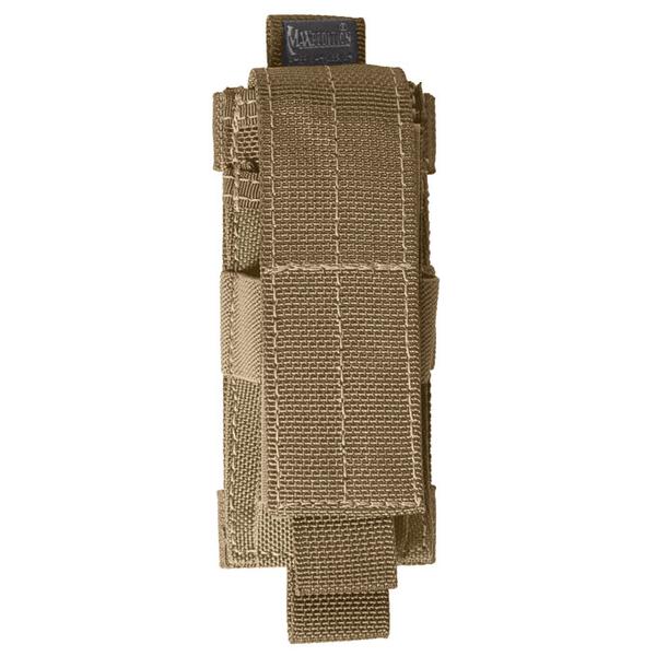 Maxpedition Single Sheath. Multifunctioneel foedraal voor lamp, multitool, pistoolmagazijn, enz. Het kan zowel horizontaal als verticaal aan een broekriem, rugzak of MOLLE vest gedragen worden.