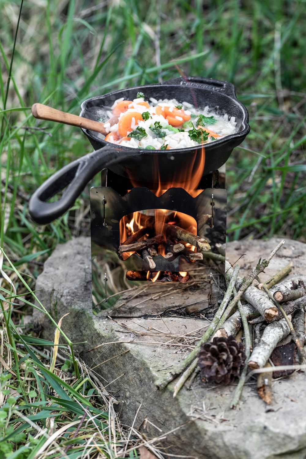 De vuurpan is niet alleen te gebruiken op een houtvuur, mmar ook op het elektrische fornuis, boven de gasvlam of in de oven. Of op de grill!