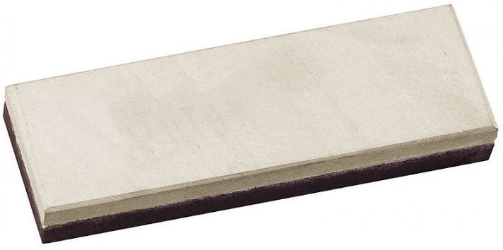 Slijpsteen 400 + 600. De witte zijde heeftkorrel 600, de oranjekleurige zijde heeft korrel 400. Maak de steen nat met water bij het gebruik. – Afmeting: 15 x 5 x 2,5cm – Gewicht 445g