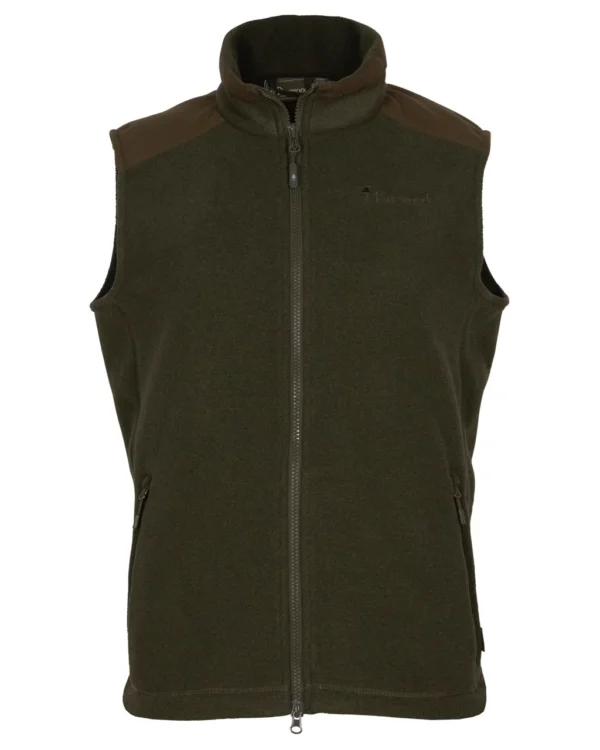 Smaland Forest fleece bodywarmer van Pinewood. Eco-vriendelijke bodywarmer, gemaakt van gerecycled polyester fleece met versterkte schouders en 2-way rits voor meer comfort.