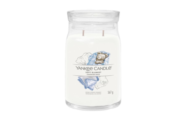 Yankee Candle Soft Blanket geurkaars in een grote apothekerspot. Verpakt in zoete dromen… een slaapliedje van zuivere citrus, luxe vanille en warme amber.