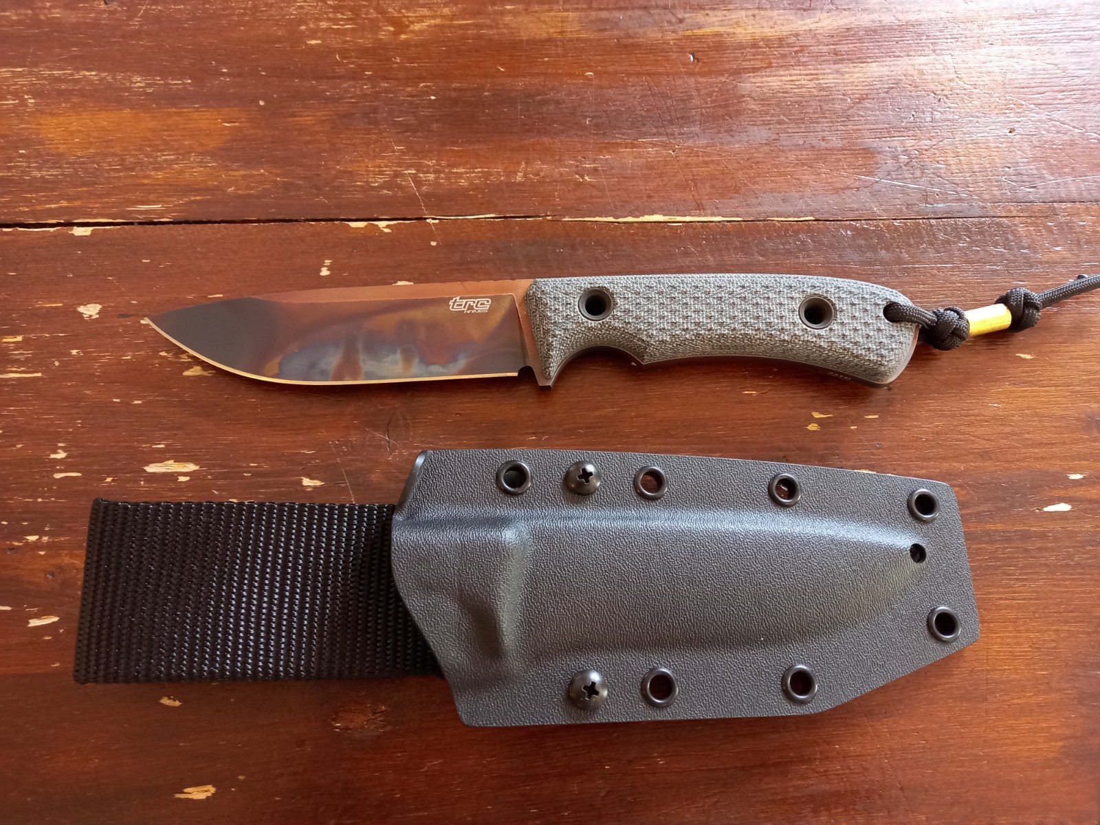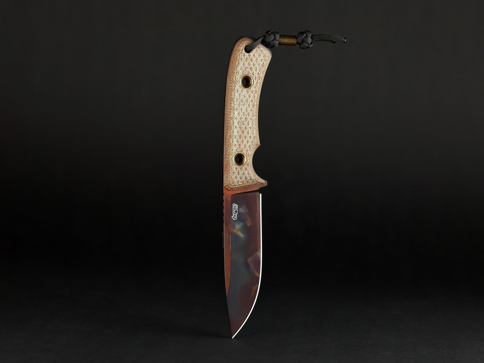 De TRC Knives South Pole is een prachtig mes dat met de hand wordt gemaakt in Litouwen. Door een speciale hitte behandeling heeft het een gevlamde uitstraling wat Apocalyptisch geeft. Dit mes is net als alle andere messen van TRC Knives van een hoogwaardige kwaliteit wat je zeker ziet in de details en tijdens het gebruik bij bijvoorbeeld bushcraft, tactical of jacht activiteiten.