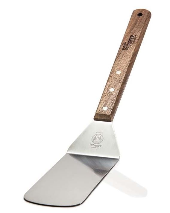 Petromax spatel, lang. In de pan of op de grill: vlees, vis en groenten keert u gemakkelijk om met de Petromax spatel. Met zijn walnoten steel is de petromax fijn vast te houden, terwijl het blad van geborsteld roestvrij staal met zijn uitgekiende vorm zonder ze te beschadigen te gebruiken is met pannen en roosters. Voorzien van een oog om hem aan op te kunnen hangen. Deze spatel voelt zich net zo thuis in de keuken als op de BBQ.