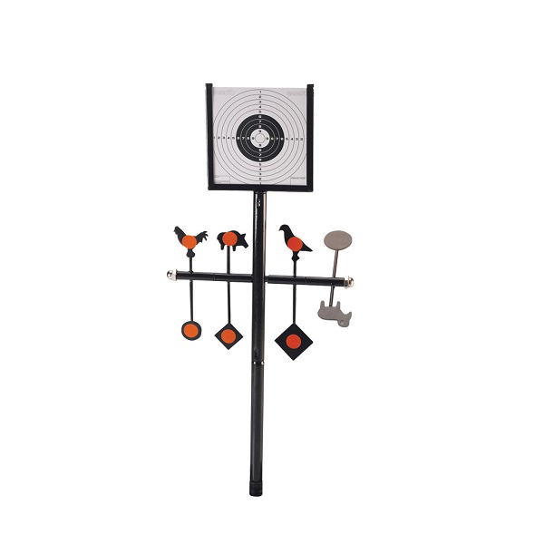 Uitgebreide mogelijkheden met dit luchtbuks doel. Dit schietdoel beschikt over vier draaiende doelen (spinners). De oranje doelen klappen weg als je ze raakt. Met steun voor 14 x 14 cm schietkaarten, waarvan een voorraadje wordt meegeleverd.