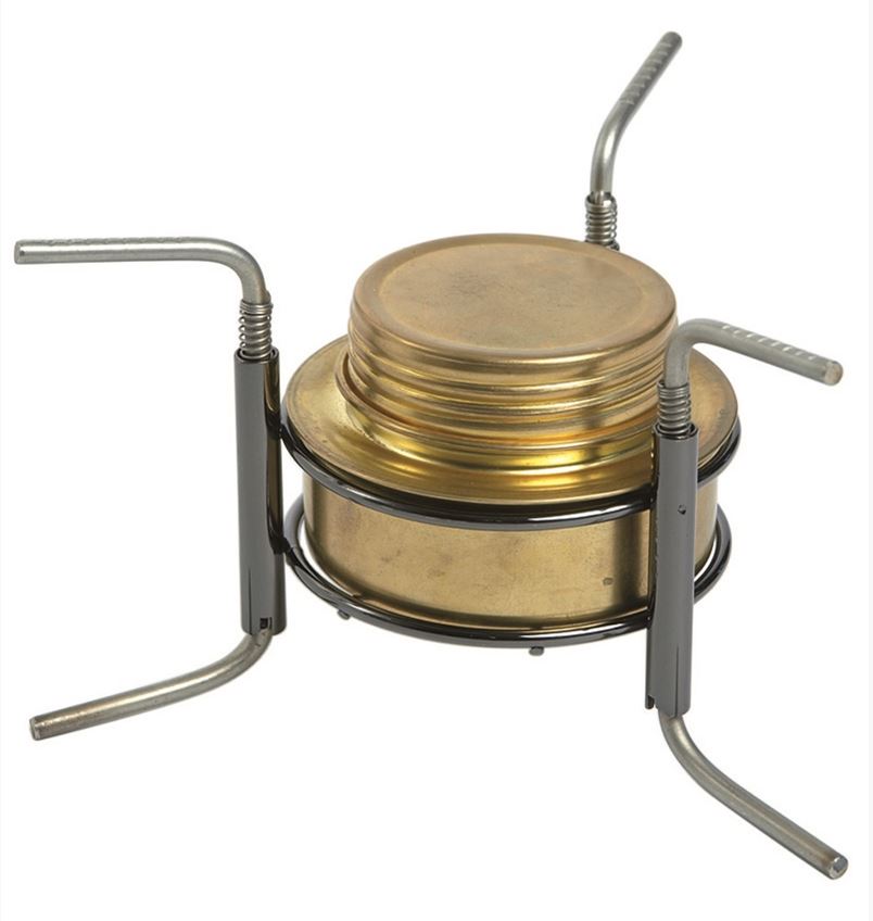Standaard/pannensteun voor onze spiritus branders. – Gewicht: ongeveer 100 gram – Hoogte: 9,3 cm – Geschikt voor pannen en ketels met een diameter van ca. 12 cm of meer – Materiaal: staal