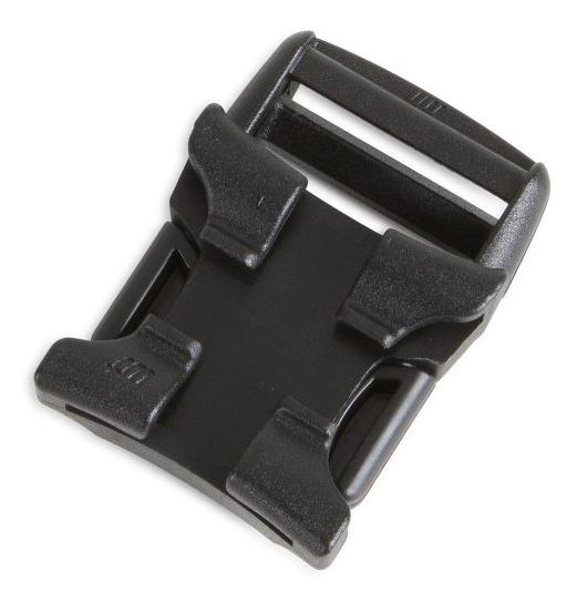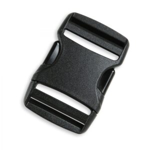 Side release buckle for horizontal and vertical fixation on any MOLLE system.