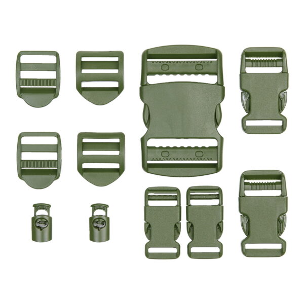 Voordlige set met de meest voorkomende steekgespen, cordlocks en schuifgespen.