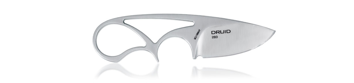 Steel Will 283 Druid. Hoe maak je een ultralicht mes dat toch tegen een stootje kan? Je laat alles weg wat niet strikt nodig is, en voila: de Steel Will Druid 283, een echt EDC mes. Door zijn uitgekiende vorm ligt de Druid 283 toch stevig in de hand ondanks het ontbreken van geepschalen.