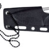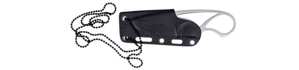 Wordt geleverd met een kydex schede en halsketting. Aan de schede kan eventueel een optionele Tek-Lok bevestigd worden om het mes aan een riem te kunnen dragen.
