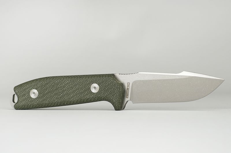 Het heft is gemaakt van micarta. Het materiaal is niet alleen ongevoelig en robuust, maar net zo antislip als comfortabel in de palm van je hand. Na verloop van tijd ontwikkelt de Micarta een patina waardoor elk mes een heel eigen karakter heeft.