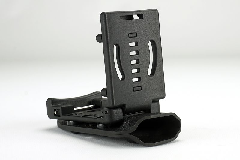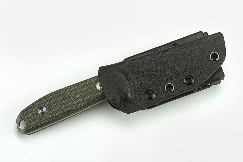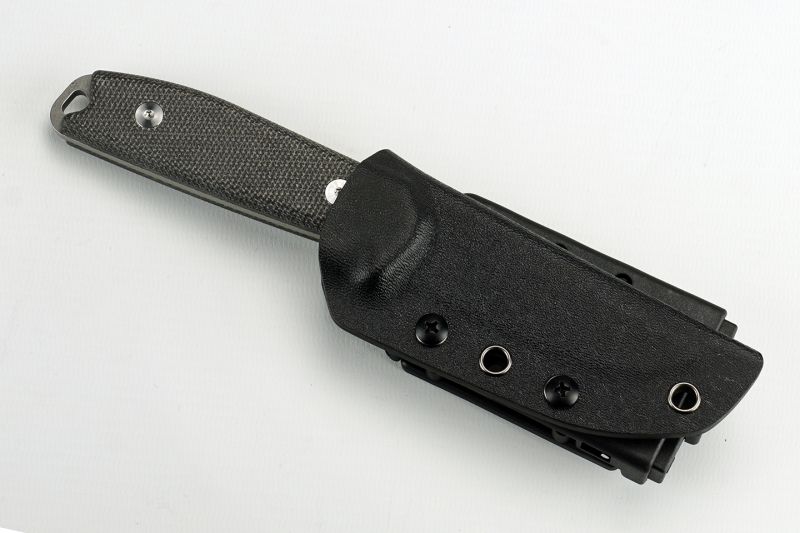 Elk mes wordt geleverd met een precies passende Kydex schede, die met behulp van de Tek-Lok eenvoudig in verschillende posities aan een riem of apparatuur kan worden bevestigd.