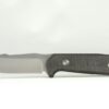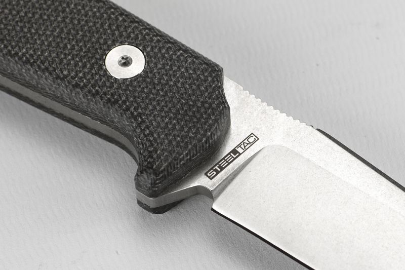 Het lemmet is gemaakt van het niet geheel roestvrije, maar zeer scherpe D2 staal. Om de elegante look zo min mogelijk te verstoren, is gekozen voor de meest discrete belettering op de achterkant.