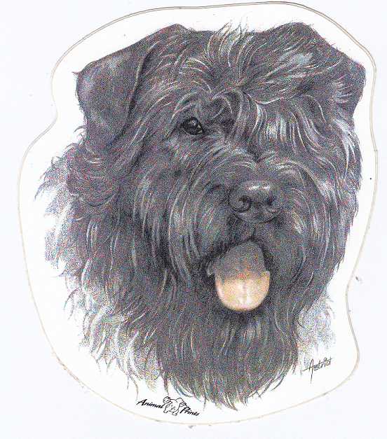 Sticker van een Bouvier. Afmeting ongeveer 12 x 13,5 cm