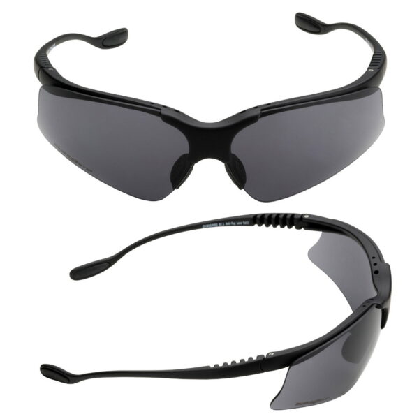 Veiligheidsbril van Swiss Eye, model Stingray. Zeer flexibel montuur. De lenzen zijn gecoat tegen beslaan en krassen. Beschermen tegen UVA, UVB en UVC, Komt met extra oranje en heldere lenzen.