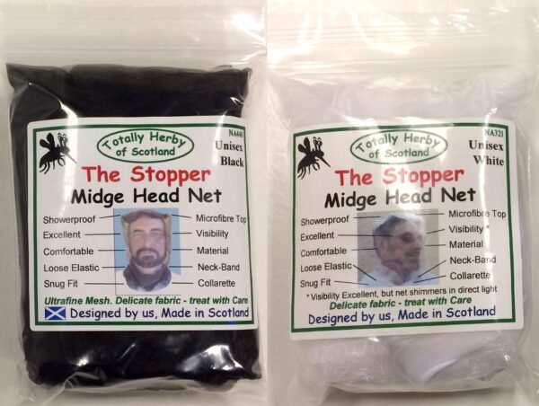 The high Quality lightweight midge net packs in a small resealable grip-seal bag. It is safe to use with Stop Bite, our bog myrtle natural midge repellent, which is a perfect partner for the head net.