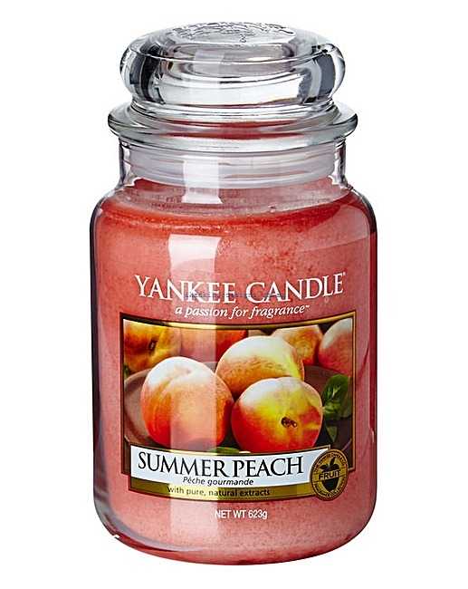 Yankee Candle Summer Peach Large Jar is de geur van verse rijpe perziken rechtstreeks van de perzik boomgaard. Deze perziken zijn verwarmd door de zon en dagen je uit voor een eerste sappige hap.