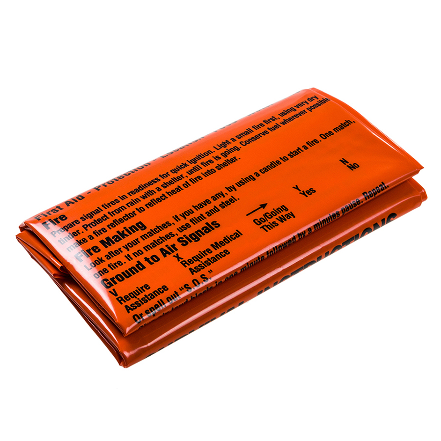 BCB Survival bag CL044. Opvallende en lichtgewicht survival bag met als opdruk overlevingsinformatie (Engels) zoals tips over navigatie, vuur maken en beschutting.