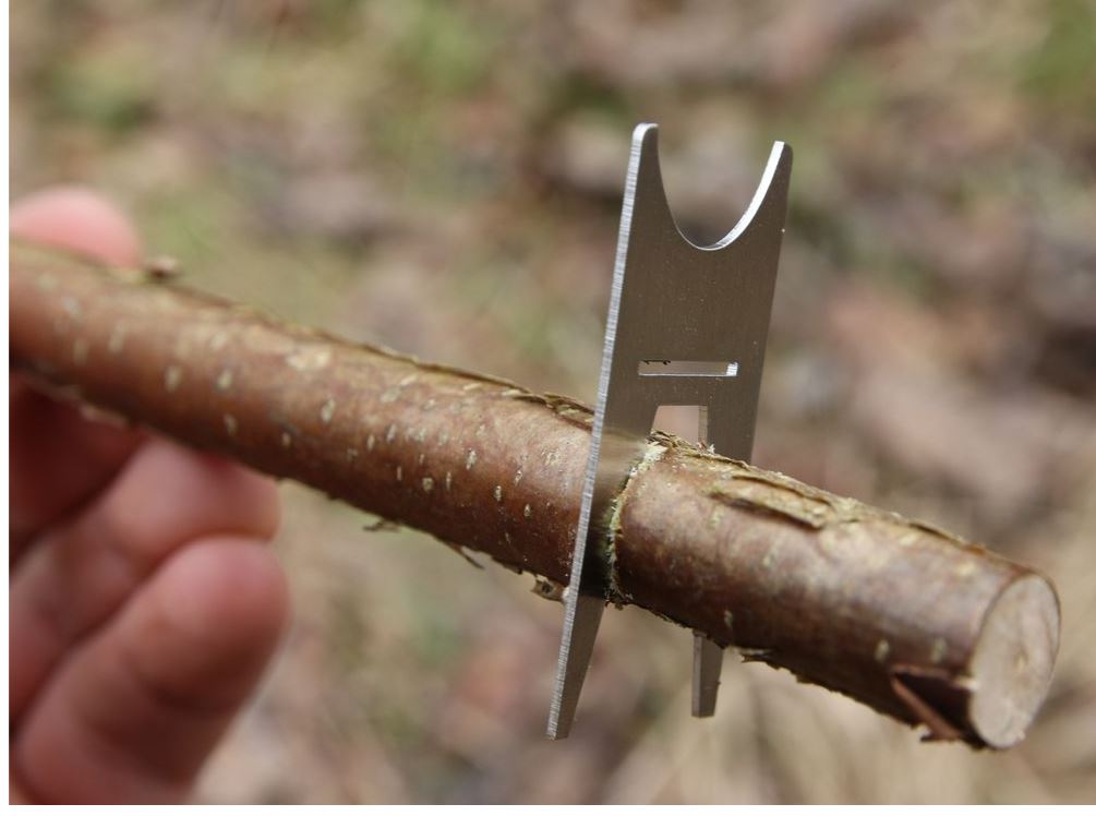 Zaag een tak af ter lengte van een onderarm, zaag een lange groef (minstens zo lang als de catapulthaak), plaatst de catapulthaakhaak (met de haak aan het lange uiteinde) – druk stevig aan. Catapulthaak vastbinden, in twee tegenovergestelde steuninkepingen zagen, ssteek de steun in en druk deze erin, rijg de steunhouder in de uitsparing, bind de steun vast met de steunhouder en zet hem vast.