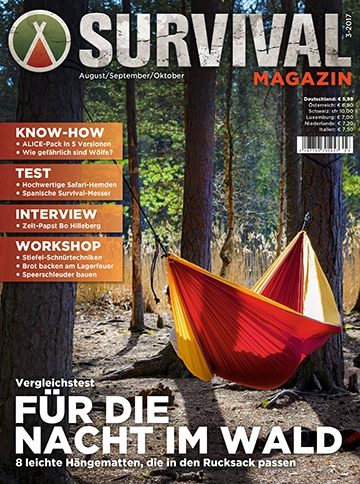 Survival, bushcraft, outdoor, avontuur – dit zijn de onderwerpen waar SURVIVAL Magazin over gaat. Overleven in de natuur alleen uitgerust met de essentiële zaken, is een uitdaging waar steeds meer mensen voor staan ​​- vrijwillig. In tegenstelling tot het dagelijkse leven, vluchten ze voor een beperkte tijd voor de beschaving om jezelf en je eigen grenzen te leren kennen, de natuur te ervaren en een nieuwe vrijheid te vinden.