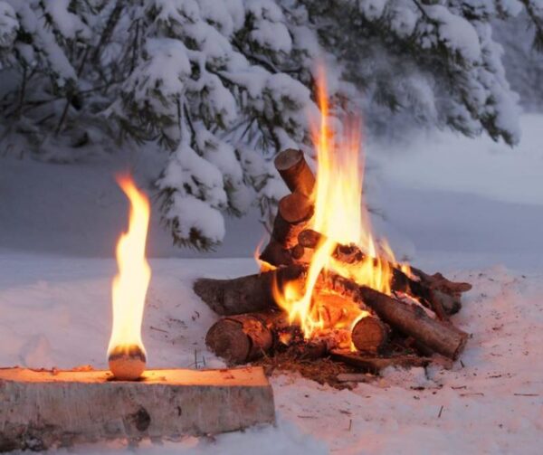 Gemakkelijk aan te steken met lucifers, aansteker, fire steel en brandglas.