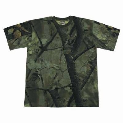 Camo T-shirt met korte mouw en ronde hals in een jacht camo patroon. Uitstekende kwaliteit. – Versterkte ronde hals. – 100% Katoen – 170 gram/m2