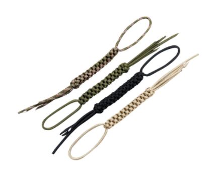 Tactical Puller is made of 2.2m of woven paracord. The Puller is an easy and convenient way to carry emergency paracord with you, which in case of an emergency can be easily converted into a tear-resistant rope. Large Puller can be also use to repair a backpack, as a pistol or knife lanyard, tactical goggles or glasses holder, shoe or boot lace, fishing line or zip pullers and should be a part of any serious survival kit.