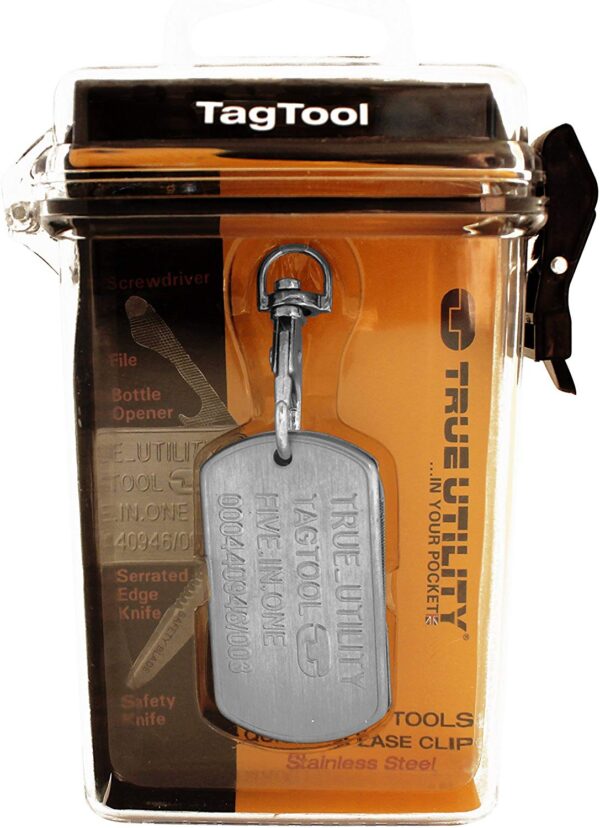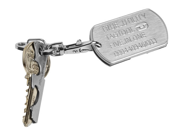 Sleutelhanger tool. Met hulpstukken die je bijna dagelijks nodig hebt. – Mesje met zaag gedeelte – Opener – Schroevendraaier – Vijl