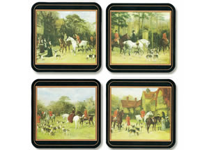 Tally Ho placemats van Pimpernel. Set van vier verschillende placemats. Een unieke laklaag beschermt goed tegen krassen. De kurk onderzijde beschermt uw tafel.