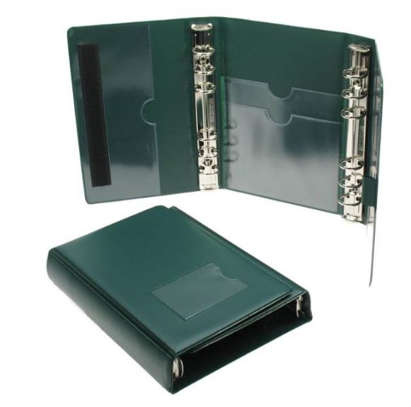 Kunststof ringband. Heeft twee ringsystemen en 6 steekvakken plus een potloodlus. Kleur: groen. Semi-stiffened folder 2 x ring mechanisms 6 internal pockets Pencil loop Colour – Olive Green