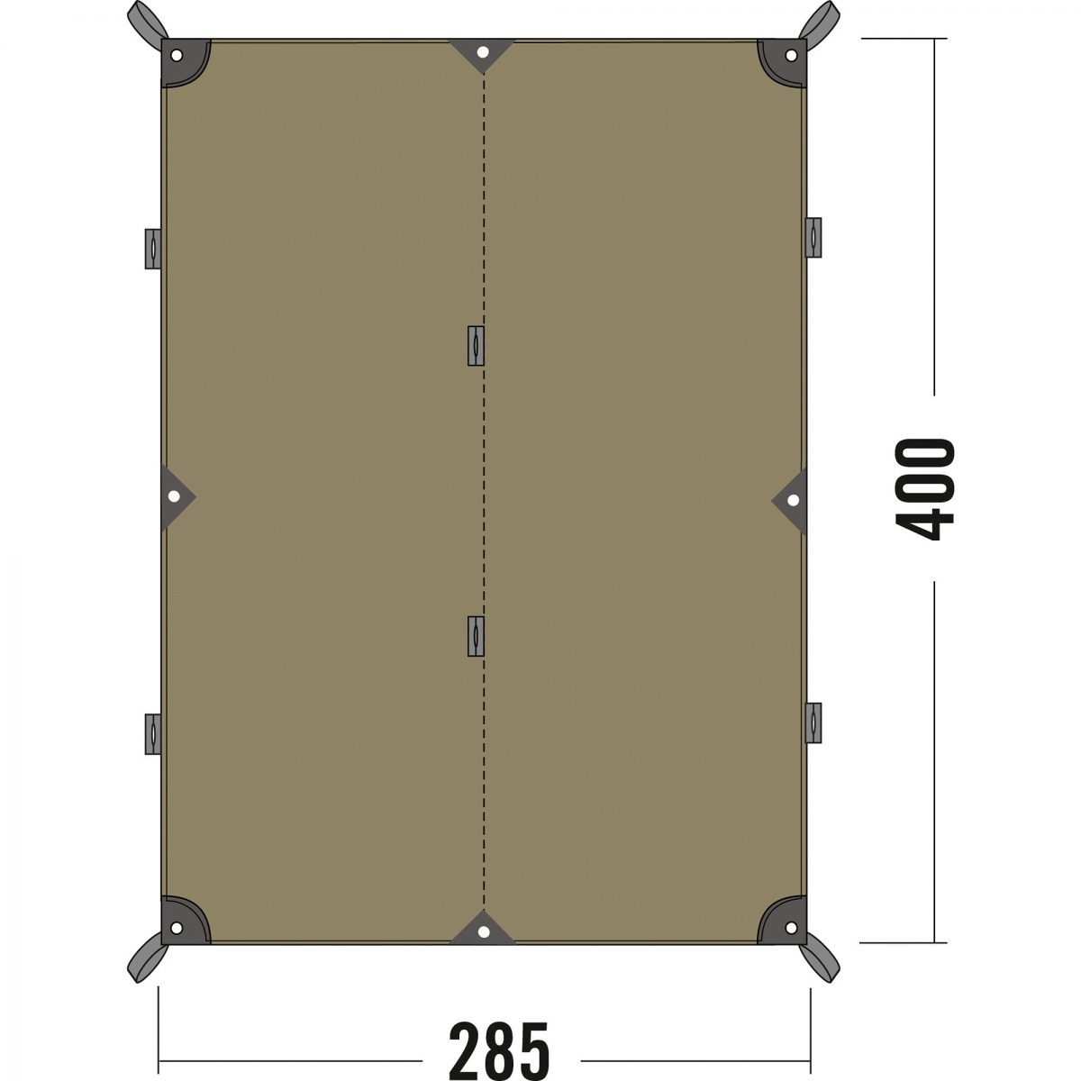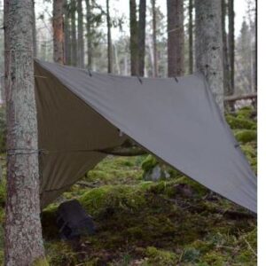 Polykatoen tarp/basha. Is veel minder gevoelig voor vonken van een kampvuur dan gebruikelijke tarps. Afmeting 2,85 x 4,00m. Kleur: cocoon, een donkere zandkleur.