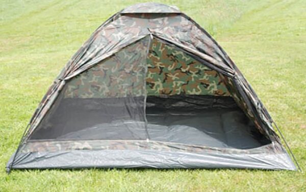 Tweepersoonstentje in camouflage. Leuk voor de kinderen, maar ook geschikt als schuiltentje bij vogel- of wildfotografie.