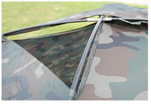 Drie-persoonstentje in camouflage. Leuk voor de kinderen maar ook goed geschikt als observatiehutje bij het fotograferen of filmen van wild & vogels.