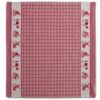 Molens, koetjes en boten. Het dessin Dutchie van DDDDD bestaat uit oer-Hollandse afbeeldingen in de border op een traditioneel rood geruite doek.