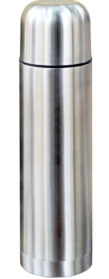 Thermosfles bestaande uit RVS binnen- en buitenfles met vacuum tussenruimte. Schenkdop. Voorzien van een “getter” voor regulatie drukverschillen. Inhoud 0,5 L.