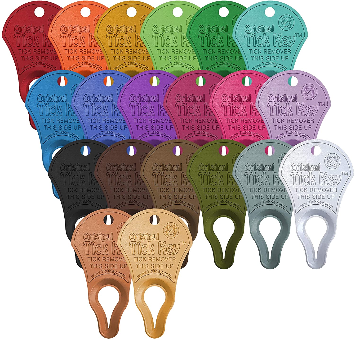 The Tick Key® is flat and is easily stored in a wallet, pocket, on a key chain, collar, saddle, or leash.